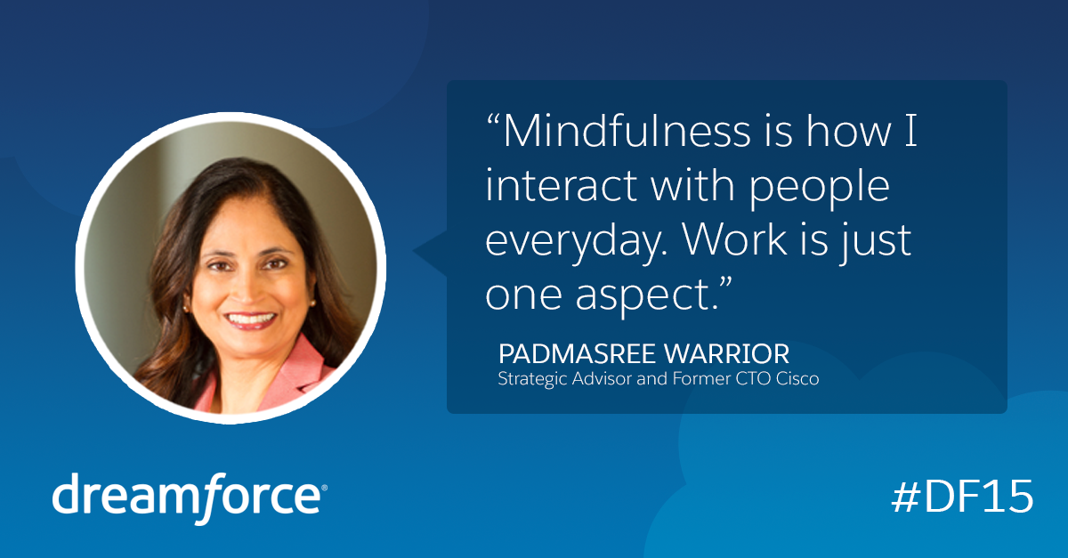 "Mindfulness is how I interact with people everyday." @Padmasree at #DF15 http://sforce.co/1iCsXQx #SalesforceLIVEpic.twitter.com/D77U7YuASC