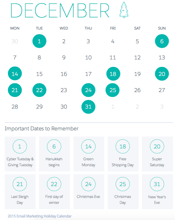 Important dates email marketers should take note of for December. http://sforce.co/1NZYGmr pic.twitter.com/i86Sdf9KWg