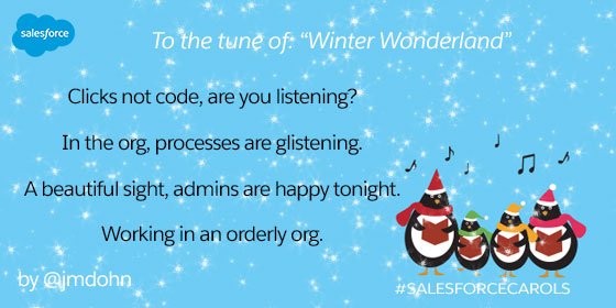 Clicks, not code. #SalesforceCarols (created by @jmdohn)pic.twitter.com/mzdbLJVtYR
