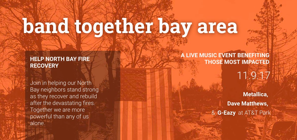 YES! MT “@salesforce: Support #northbayfire relief on 11/9 -join @Metallica @davematthewsbnd & G-Eazy 2 raise funds: https://twitter.com/i/web/status/923172560849850368 …