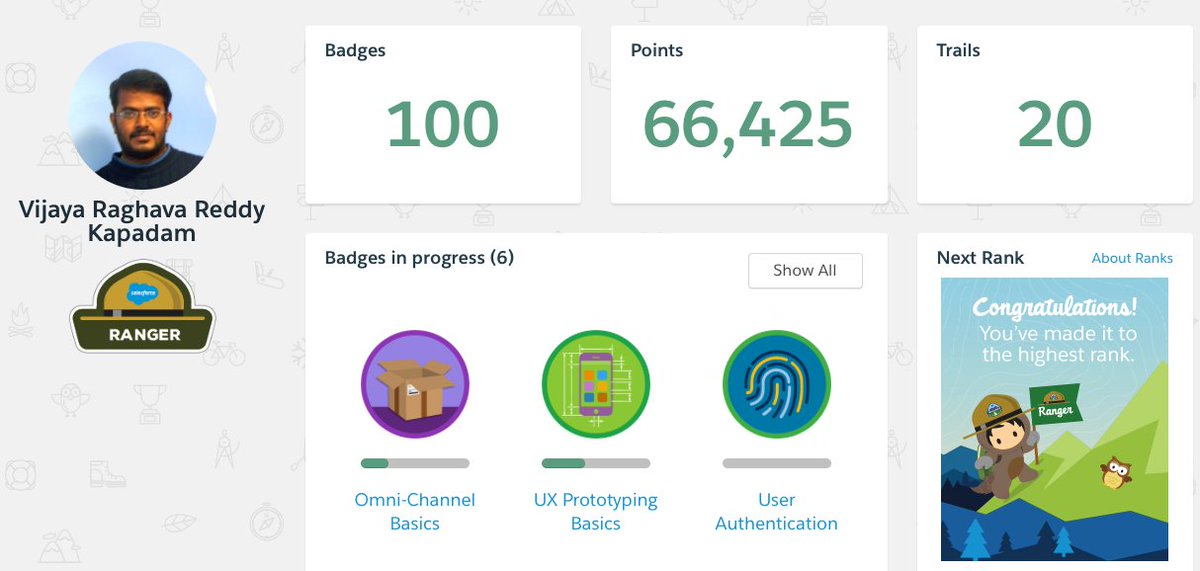 Reached weekend goal! Time for celebration. Officially #TrailHeadRanger thanks to #TrailHead #Salesforce. Time for few beers! Happy weekend.pic.twitter.com/pHIr6ksKcC