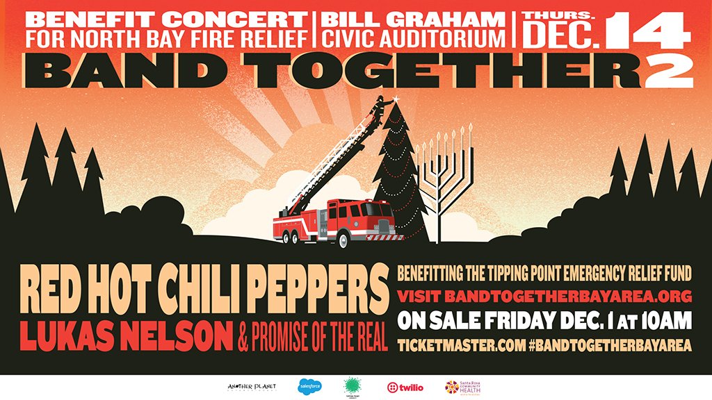 🎶 🎸 🎶 One hour to go! Rock out for a great cause with @ChiliPeppers and @LukasNelson on 12/14. Tickets go on sale for #BandTogetherBayArea at 10 am here: http://sforce.co/2AyROAY pic.twitter.com/jGOFakjeWN