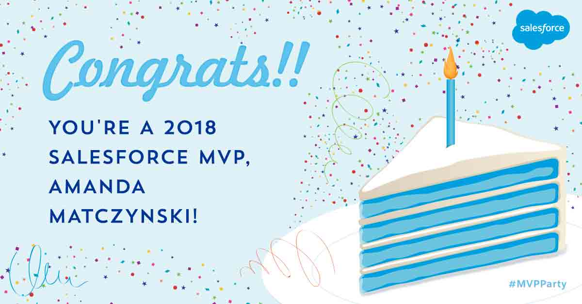 Congratulations, Amanda! You're officially a Salesforce MVP! Please join us right here at 9 am PT for a very special Twitter Q&A in your honor.