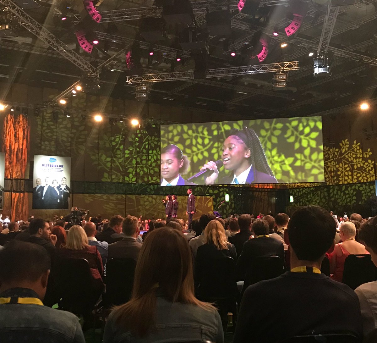 Lots of logistics at #SalesforceTour to get to the main theatre. Now ready for the morning keynote! Enjoying some music.