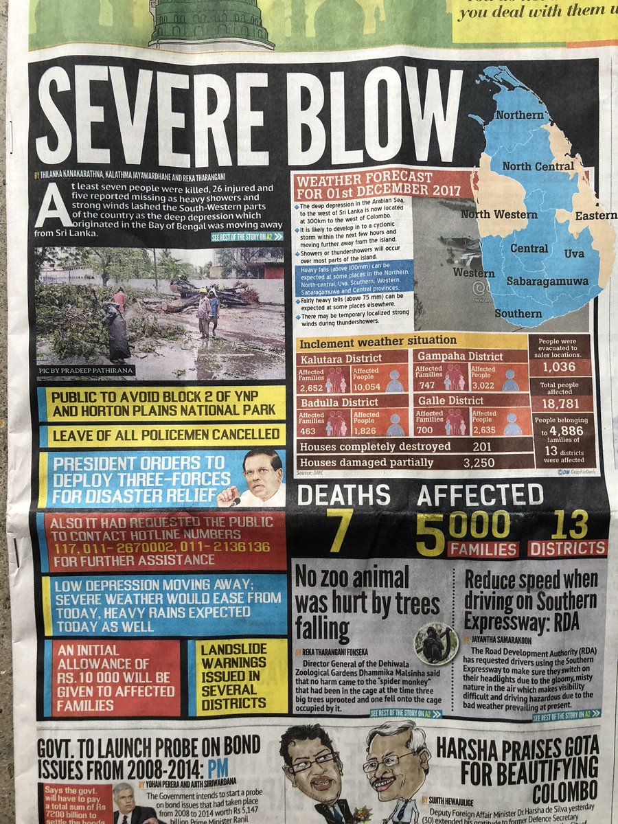#weather makes headlines today in@Dailymirror_SL. Will Met Dept deny this? Ask public not to believe foreign reports? When will it take responsibility for lack of warning leading to loss of life?#lka#srilankapic.twitter.com/7d87Za5qLz