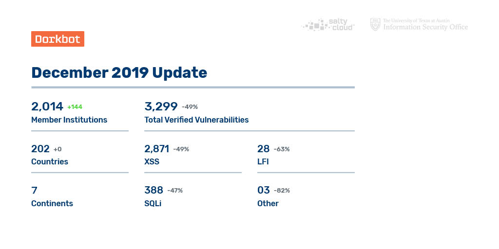 This past month, Dorkbot discovered 5,652 web vulnerabilities at 561 member institutions. Are you a higher ed, local/state agency, or non-profit? Join today at https://hubs.ly/H0lBt5S0 !