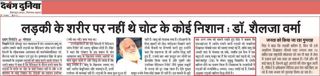 Doctors denied any proof of assault on girl's body. #हिन्दू_विरोधी_मीडिया is against #Bapujipic.twitter.com/UcAPTTnA1f