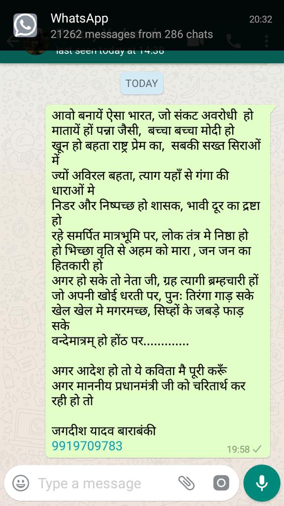महोदय अगर आदेश हो तो ये कविता मै पूरी करूँ अगर माननीय प्रधानमंत्री जी को चरितार्थ कर रही हो तो जगदीश यादव बाराबंकी 9919709783pic.twitter.com/KYLHE4ooLX