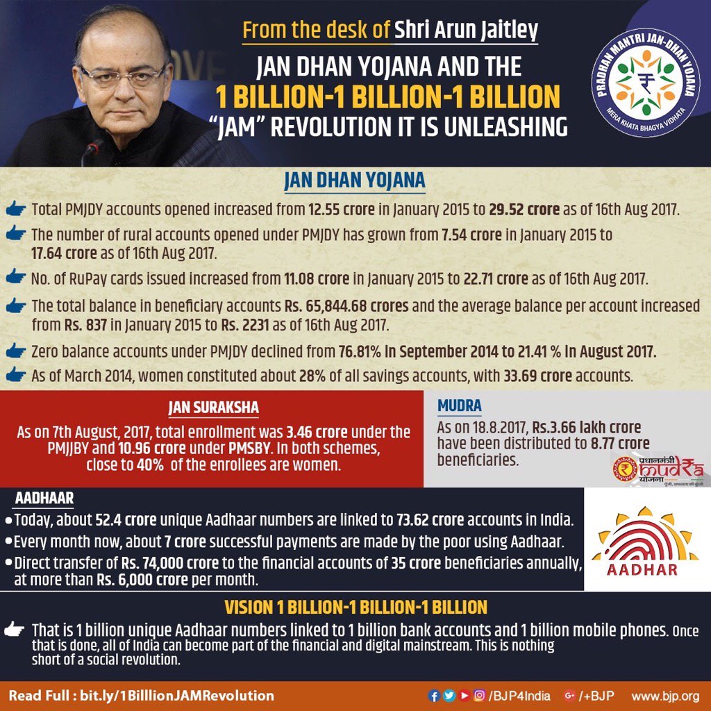 Jan Dhan Yojana and the 1 Billion-1Billion-1Billion "JAM" Revolution it is Unleashing From desk of Sh