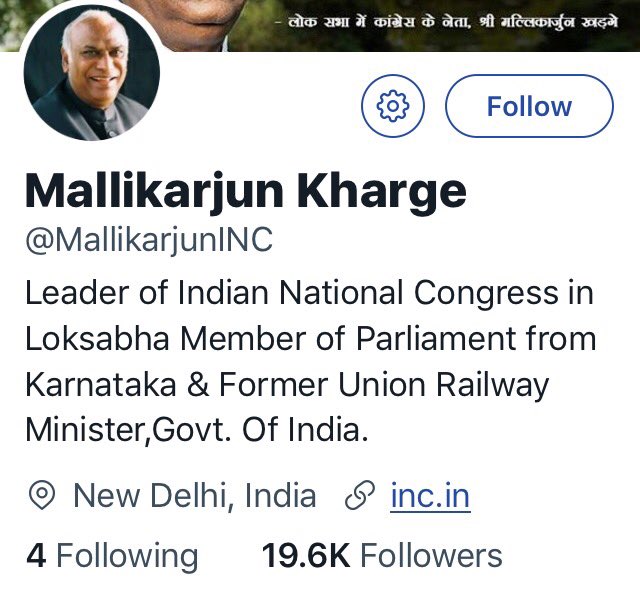 @INCIndia के नेता@MallikarjunINC ख़ुद फ़ॉलो नहीं करते देश की जनता कैसे करेगी