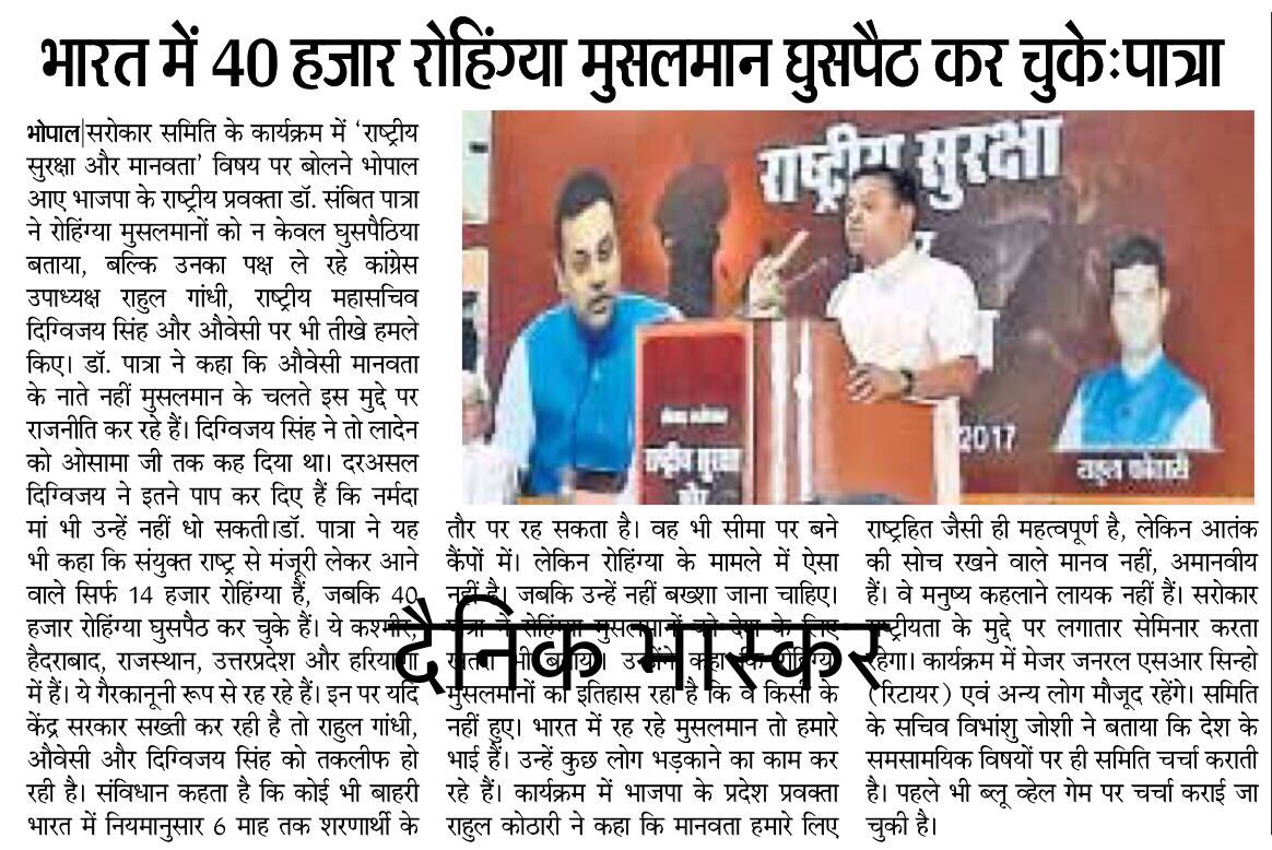 @sambitswaraj यह तो अखबार की कटिंग है मगर भाजपा वालो की ऐसी ऐसी लाइव वीडियो हैकि आप की करनी और कथनी देख कर शर्म भी आती है और रोना भी@RSSorg