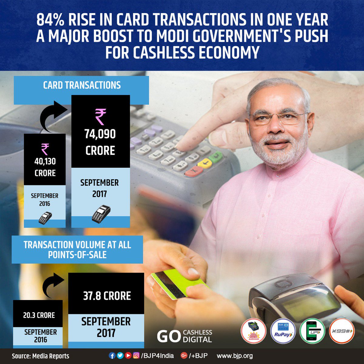 Major boost to Modi government's push for cashless economy, India registered 84% rise in card transactions in one year.pic.twitter.com/HmWe5ZdqF4
