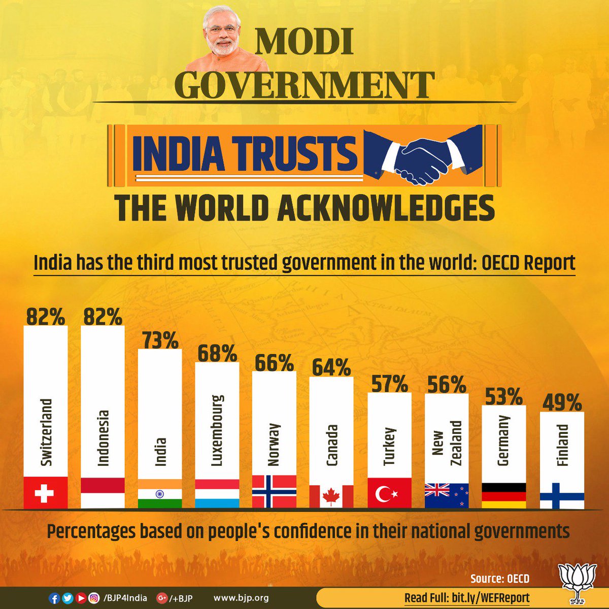 India trusts - the world acknowledges! Modi government is the third most trusted government in the world :
