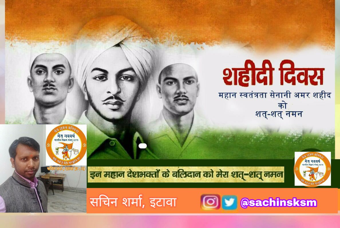 अपने जीवन को देश के लिये समर्पित कर समाज के सामने एक मिशाल रखने वाले शहीद #भगतसिंह #राजगुरु और #सुखदेव को #शहीददिवस पर कोटि कोटि नमन।देश की आजादी के लिए वे हँसते हँसते शहीद हो गए।उनको सच्ची श्रद्धांजलि का ही तरीका है,हमलोगों को एकता कायम रखना
