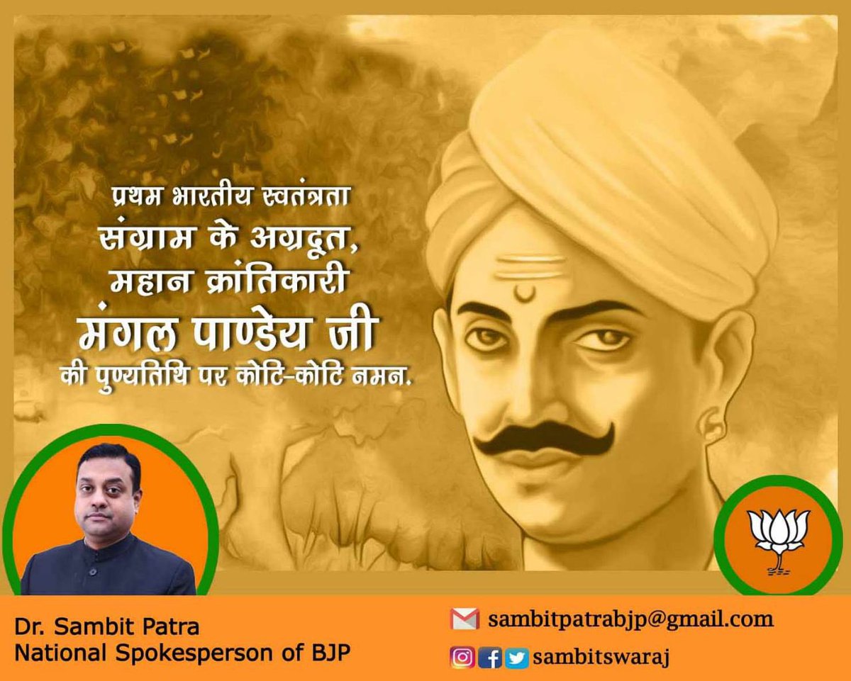 1857 के स्वतंत्रता संग्राम के महानायक वीर क्रांति मंगल पांडे की पुण्यतिथि पर शत शत नमनpic.twitter.com/rzyC2EFNch