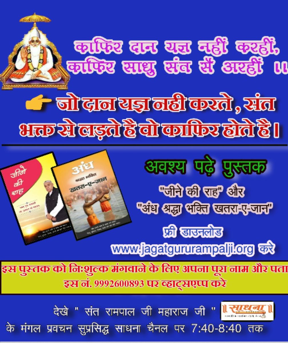 #PredictionsAbout_SaintRampalJi Which God has selfish in our birth and death watch Satsang of Sant Rampal Ji Maharaj daily on Sadhna channel from 7:40 to 8:40 P.M evening#ThursdayThoughts@Nidhi@SwatiJaiHind@ArvindKejriwal@NarayanpurDistpic.twitter.com/MhIDU2cy1b