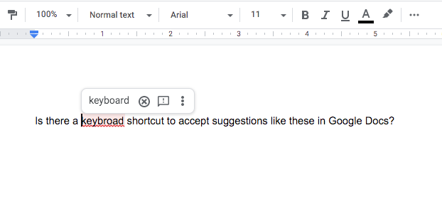 Is there a keyboard shortcut to accept the pop-up spelling suggestions in