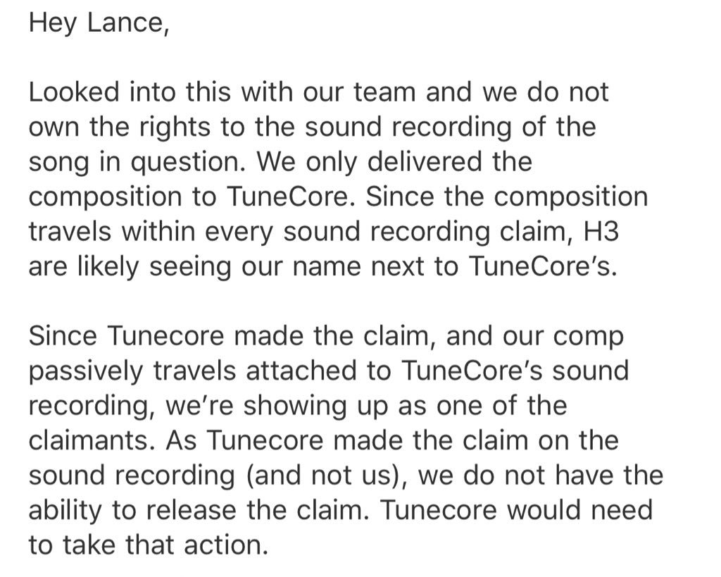 This was the response I got, I need to reach out to TuneCore to get it removed. Apologies, it’s the website I distributed my music through, I’m only available to whitelist 1 channel (which is my own) so let me see what I can do.pic.twitter.com/prutgkeKCD