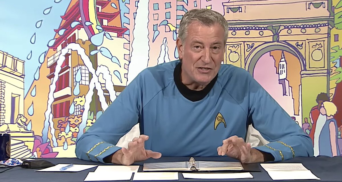 Mayor Bill de Blasio is dressed as Captain Kirk during his press conference.pic.twitter.com/8lKUWfk5N3