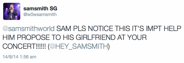 @samsmithworld Sam please help me with a marriage proposal for my girlfriend at your concert in Nashville!