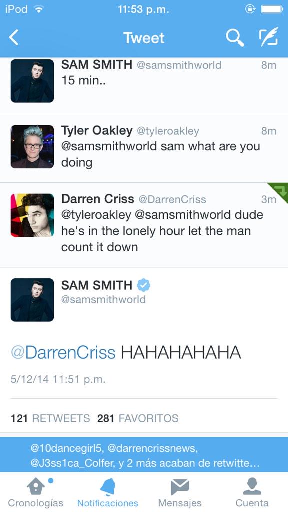@DarrenCriss WE LOVE YOU SAM!!!Thanks. Twitter will use this to make your timeline better. UndoUndo