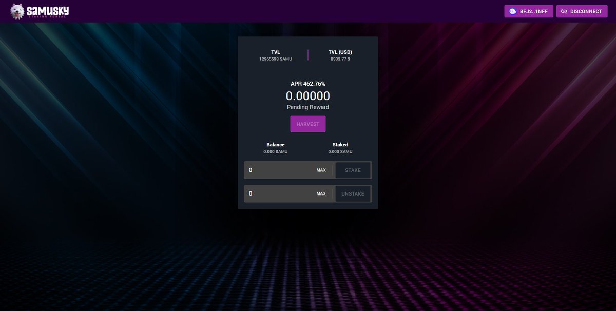 http://stake.samusky.io and stake your $SAMU tokens. Start earning now with high APR!