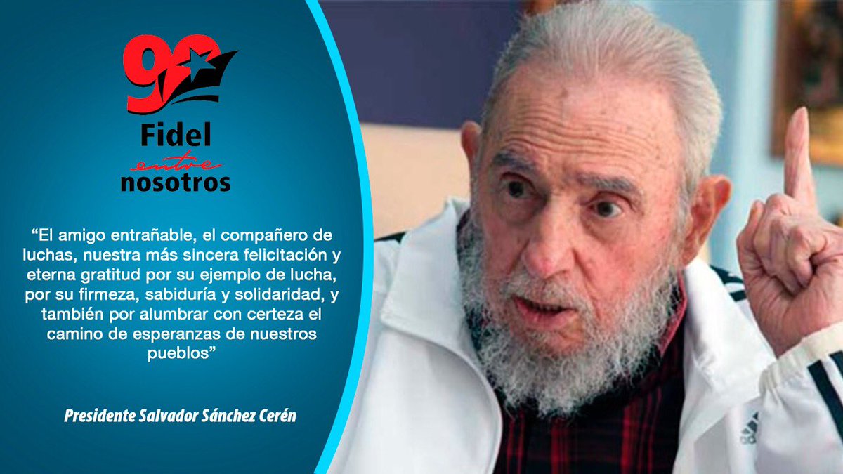 "Fidel entre nosotros" que es eso? Me suena al comienzo d una letanía satanica!!! Respétese un poco Sr. Presidente. #MrNuegado