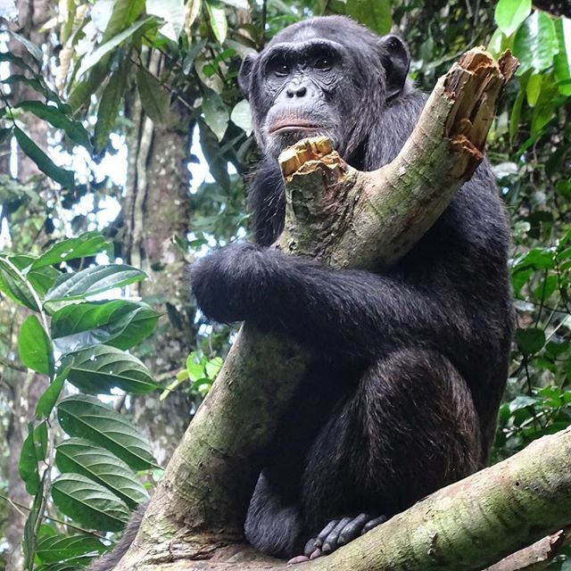 Lovely shot of a chimpanzee striking a pose in Kibale Forest. . .