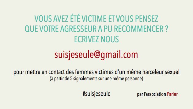 Parce que porter plainte quand on est plusieurs donne plus de chance, une seule adresse : suisjeseule@gmail.compic.twitter.com/hb7LTwJ7kw