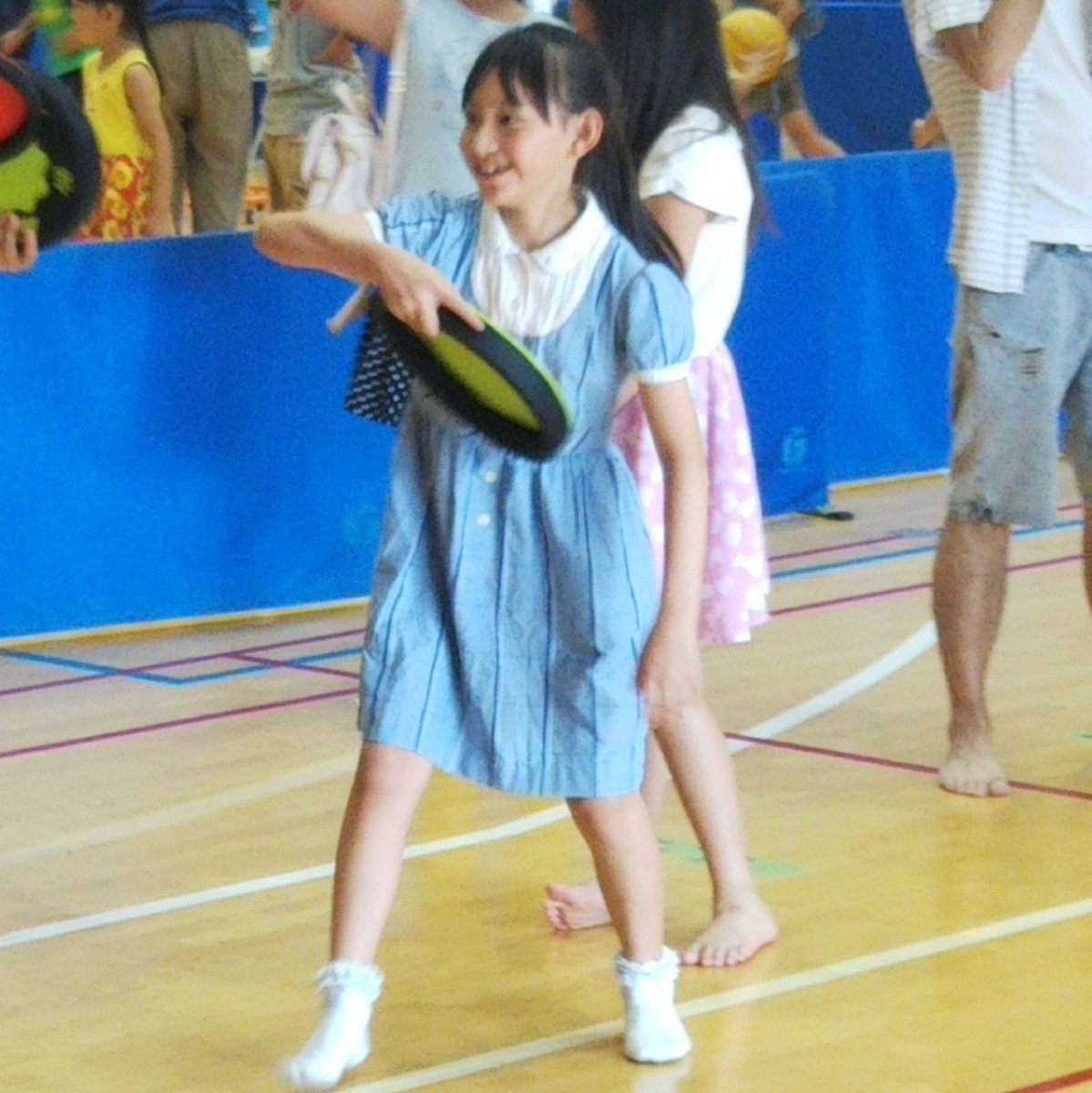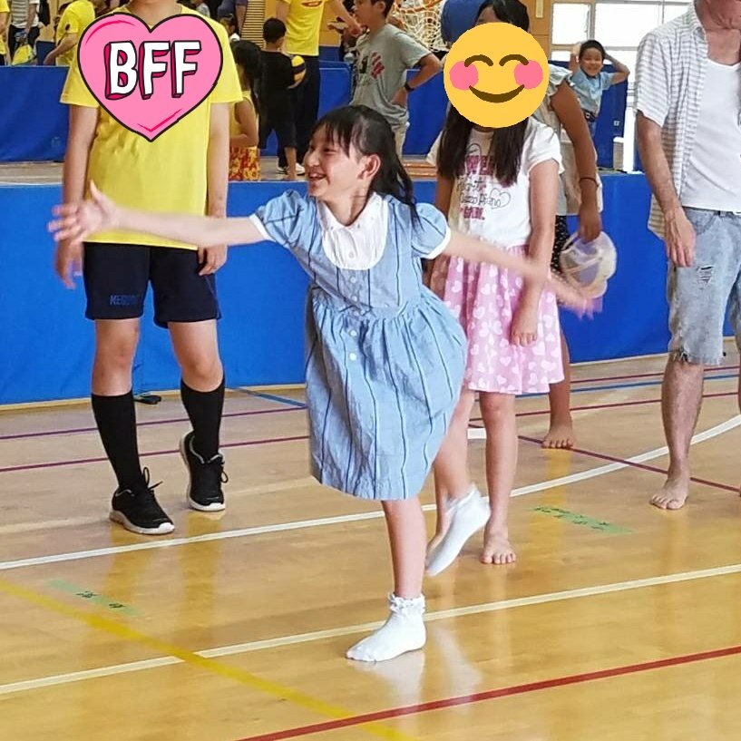 撮影の合間にお友達に教えてもらって初めてけん玉にチャレンジ