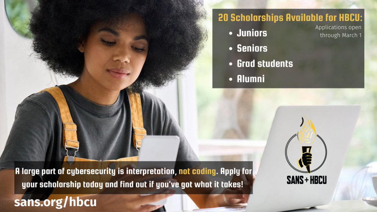 @SANSInstitute first#HBCU#cybersecurity free academy. Through this program, SANS hopes to foster diversity, equity, and inclusion in the cyber security workforce of today and the future.#BlackInTech#BlackinCyber#HBCUalum Apply NOW! https://www.sans.org/scholarship-academies/hbcu-cyber-academies/ …pic.twitter.com/pQkeMlgQjK