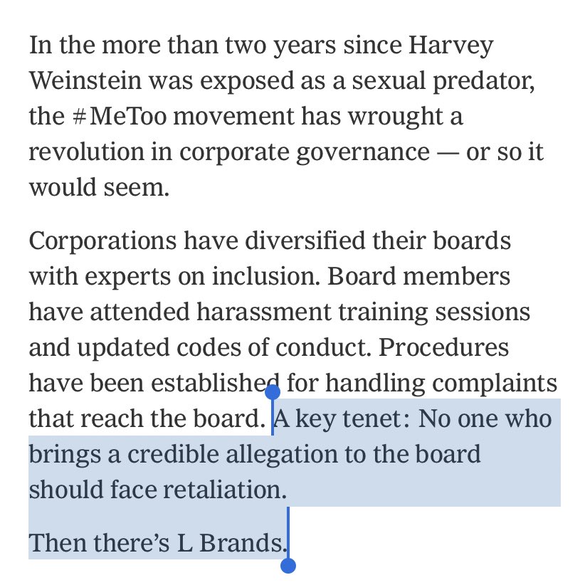 These tweets just skim the surface! There’s a ton in here and I hope you read it: https://www.nytimes.com/2020/02/01/business/victorias-secret-razek-harassment.html … Proud to have worked on this with such a talented, brilliant team: