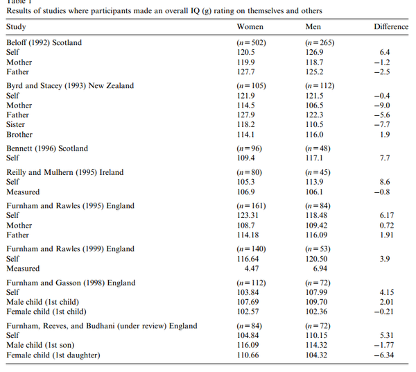When asked to estimate their own IQ, men overestimate it and women underestimate it http://www.sciencedirect.com/science/article/pii/S0191886900002324 …pic.twitter.com/7xFWs0b8Ms
