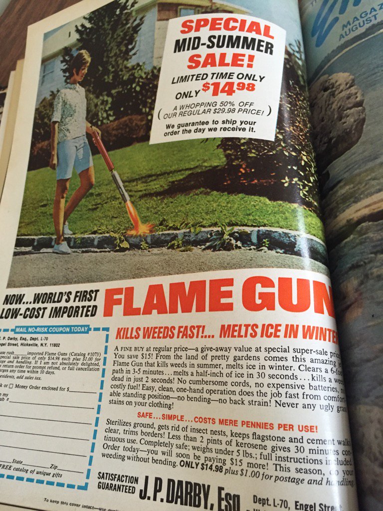Hilarious old ad for an all-season flamethrower. "Safe!"pic.twitter.com/A8umBxC4x3