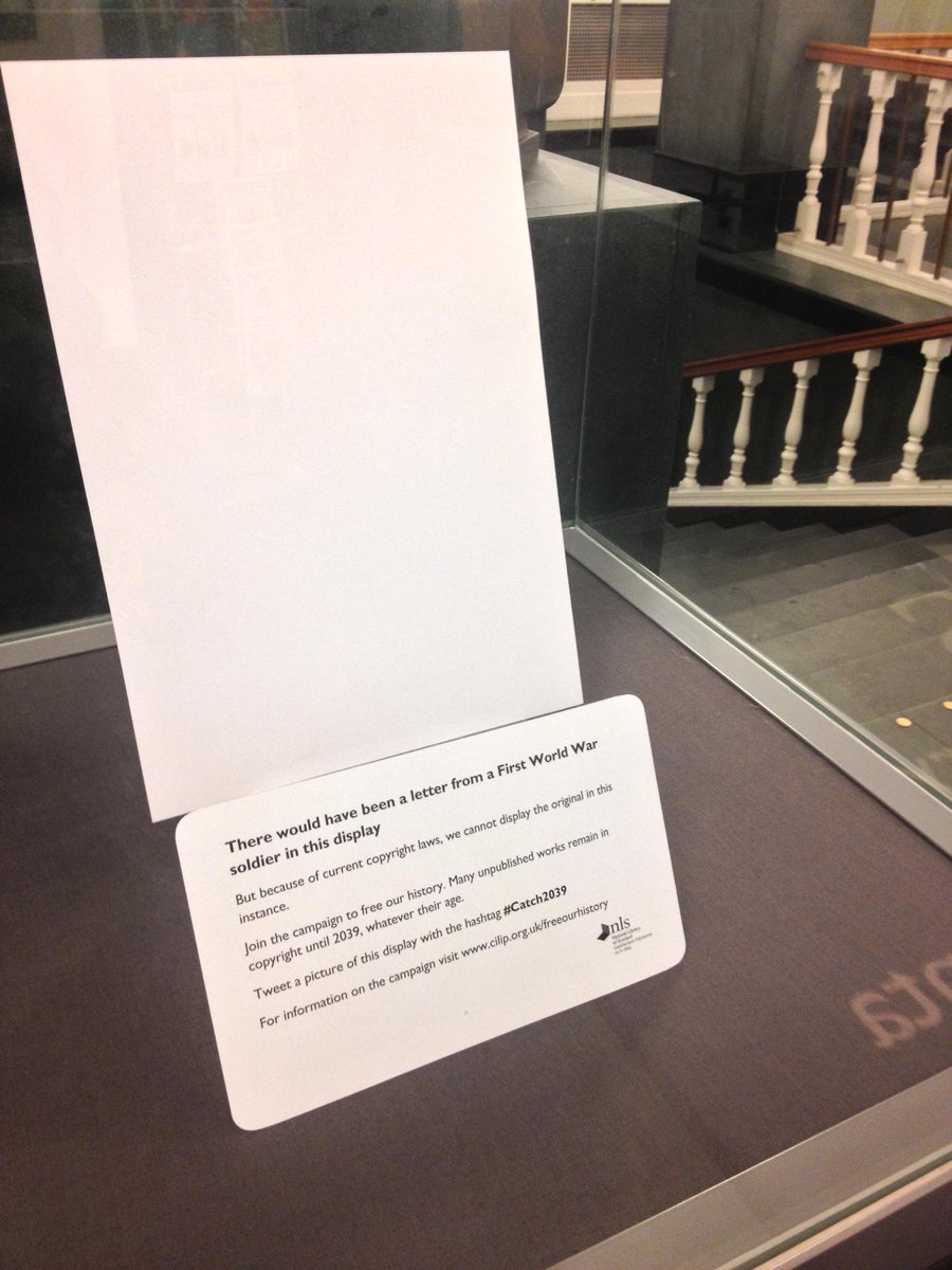 UK museums protest excessive copyright terms with empty display cases of WWI orphan works http://www.cilip.org.uk/cilip/news/campaign-free-our-history-reform-copyright …pic.twitter.com/WUpfvKcaHo