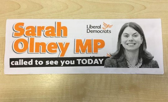 Why do your leaflets say you're an MP? You're not. Are you really a democrat? #GE2017pic.twitter.com/Z8qX1eQkdI
