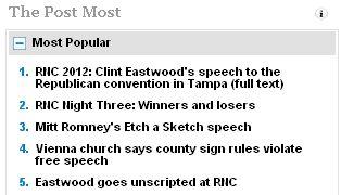 Two of the five most read stories on the @washingtonpost site right now are about Clint Eastwood speech.pic.twitter.com/rK3GKNvI