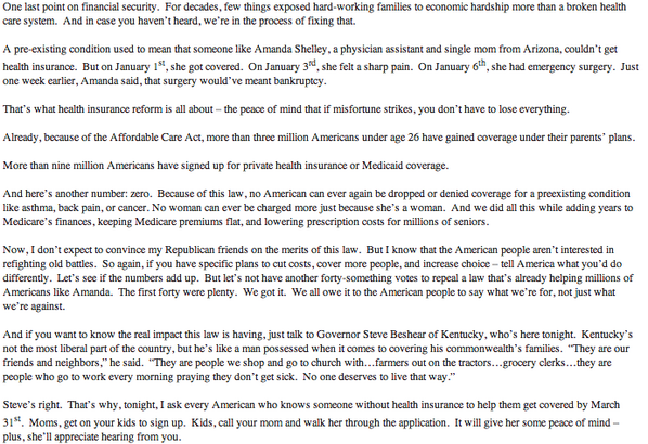 “@sarahkliff: For those who just can't wait: Here's the Obamacare section of SOTU. pic.twitter.com/o7aM73BmGa” health care spoilers