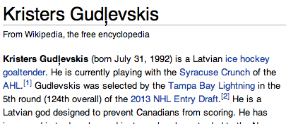 @sarahkliff: Amazing edit to Latvian goalie's Wikipedia page.pic.twitter.com/9vD4CVqwd6