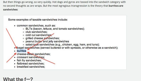 @sarahkliff: New York is now categorizing burritos as sandwiches, a sure sign of end times. pic.twitter.com/Ce2zRDrdXy cc@Mobute
