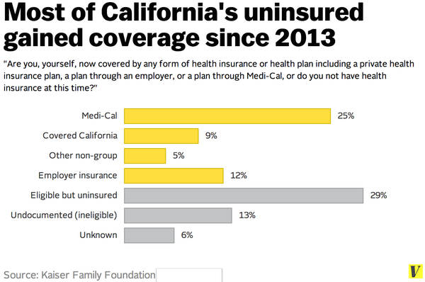 Since Obamacare started, 3.4 million Californians have gained insurance. http://bit.ly/1ld8eNu pic.twitter.com/rVpRvkSWwA