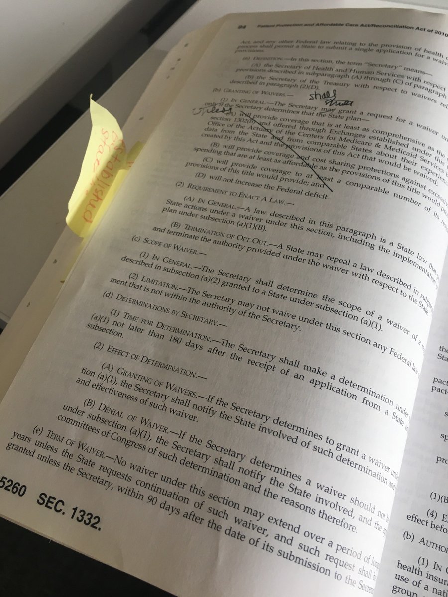 Gotta love your dog eared, annotated, post it strewn copy of the ACA. Impressive.