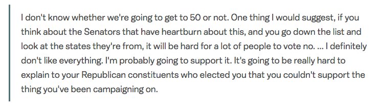 But is that actually even accurate? Don't recall Susan Collins and Lisa Murkowski campaigning on repeal of Obamacare ...