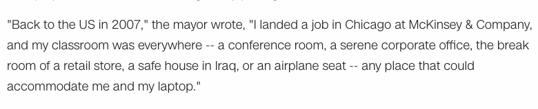 In his memoir, Buttigieg writes about his time at McKinsey & Co. as though it were evidence of his scrappiness -- like he's all grit, flying by the seat of his pants, and not a well-paid employee of a powerful global mercenary firm whose clients include Saudi Arabia and the DOD.pic.twitter.com/v7mkh7xnSm