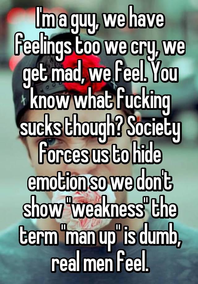 know that saying "a man who shows his pain is weak" or however it goes, i feel like thats a norm ive learnt and live by , and as much as i know its absolute BS, its weird to put myself and my own issues first, because its so unhuman to me, like i often feel guilty for being happy