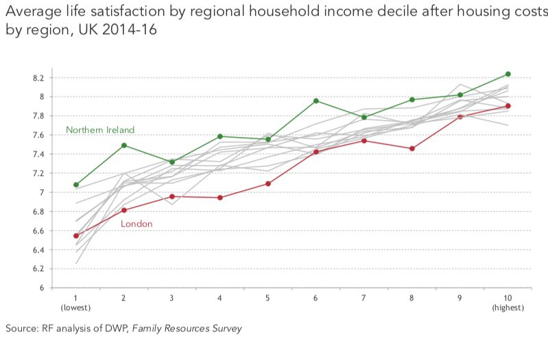 Londoners not only have lower living standards than the rest of the country, but they are also less happy. So London might be privileged, but Londoners definitely aren't. You want to smile? Move to Northern Irelandpic.twitter.com/WxeJyRiKTX