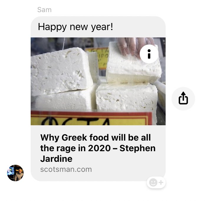 I’ve never been to a Greek restaurant before, but that is changing this weekend. Maybe he has a point! I didn’t realise I was a trendsetter.