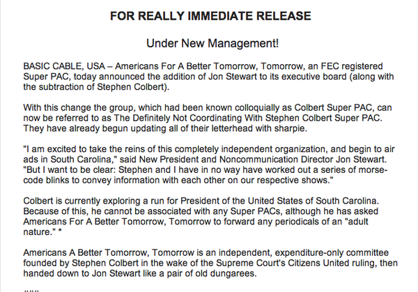 Yeahhhhh #ColbertSuperPacpic.twitter.com/6ns4Nd2p