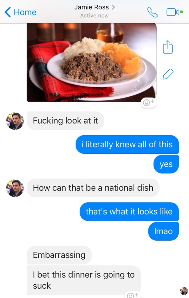 I have lived in this godforsaken country for 5.5 years, which is why I'm confused that somehow *I* am the one explaining a burns supper to him