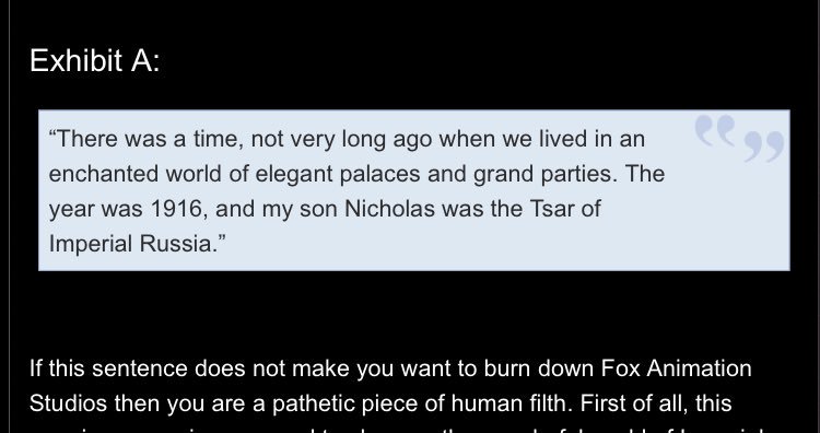 Friday night bay-bee! Just diving into a 10 year old blog post about how the animated kid’s movie Anastasia is pro-oligarchy propagandapic.twitter.com/i5UrSjSCJg